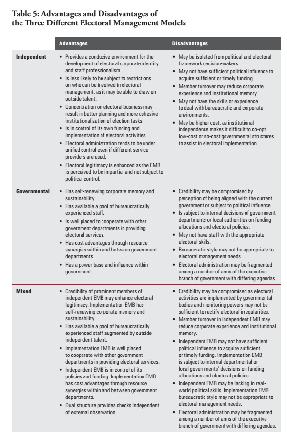 ما الذي يمكن توقعه من هيئات إدارة الانتخابات في ظل النماذج المختلفة للإدارة الانتخابية؟