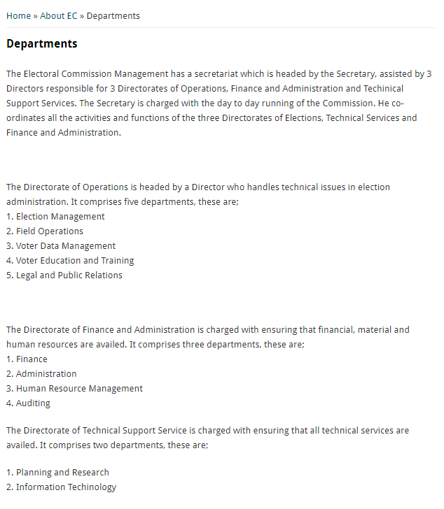 This is a description of an organigram of the Uganda EMB structure.
