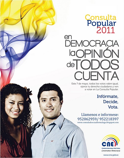 Afiche publicitario de la Consulta Popular 2011 en Ecuador.