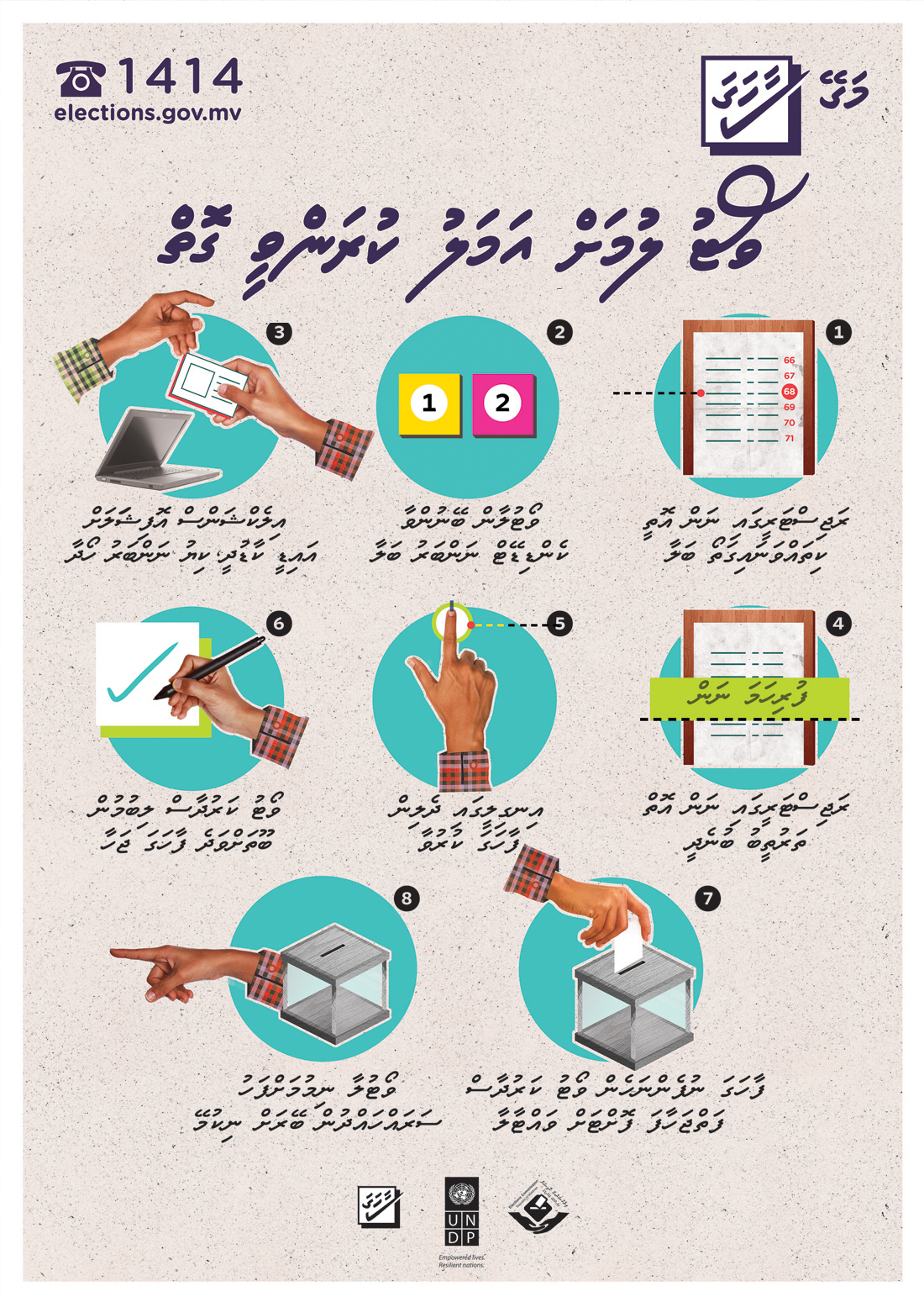 This is a voter education poster explaining how to vote in the local language of Maldives.